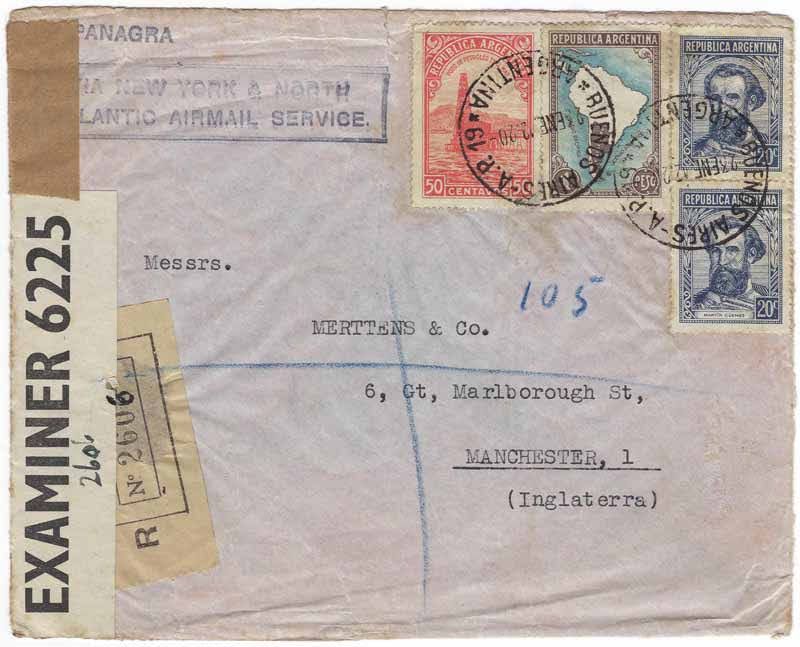 This cover bears the rare marking "Panagra New York Transatlantic Mail Service."